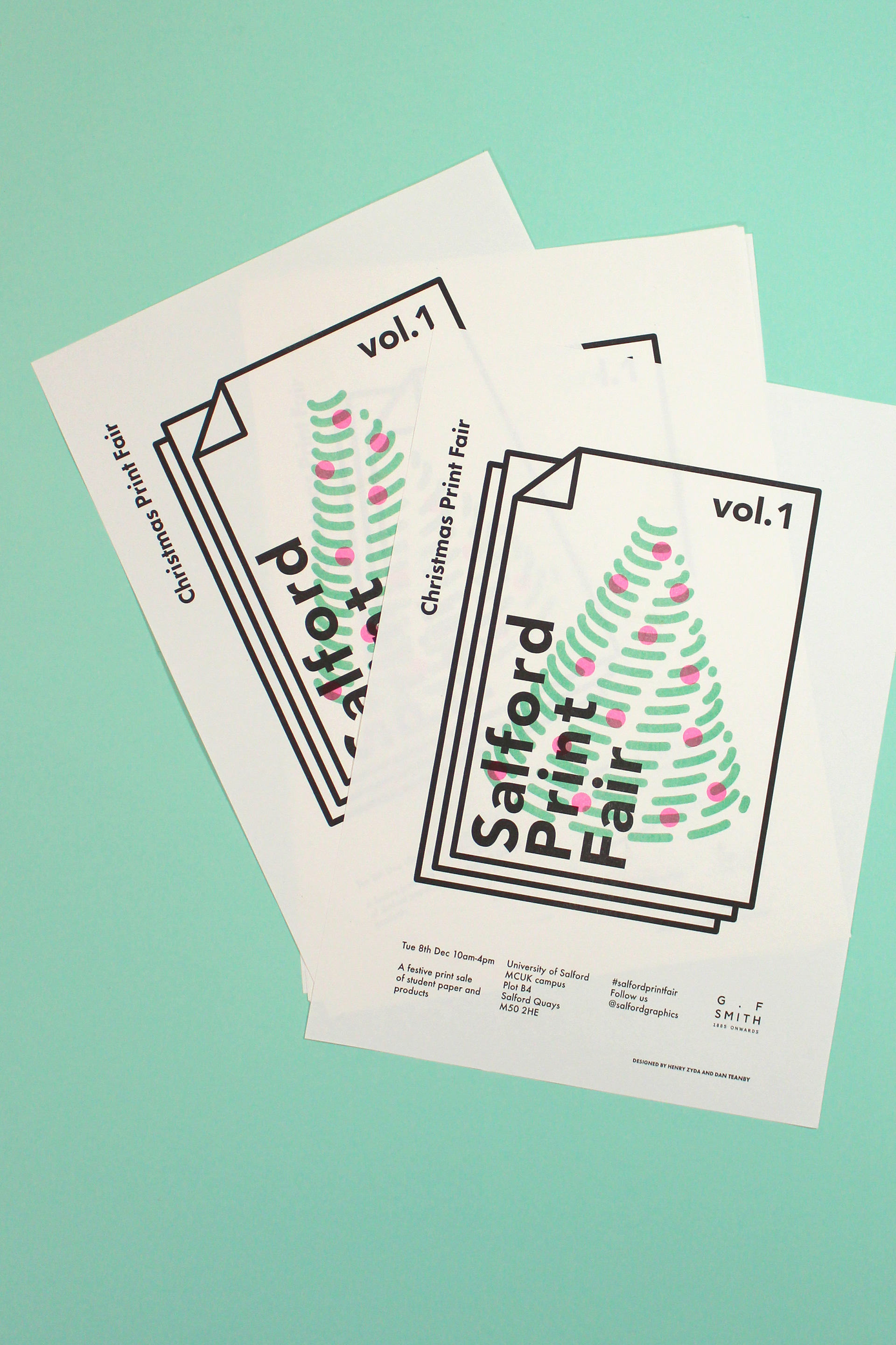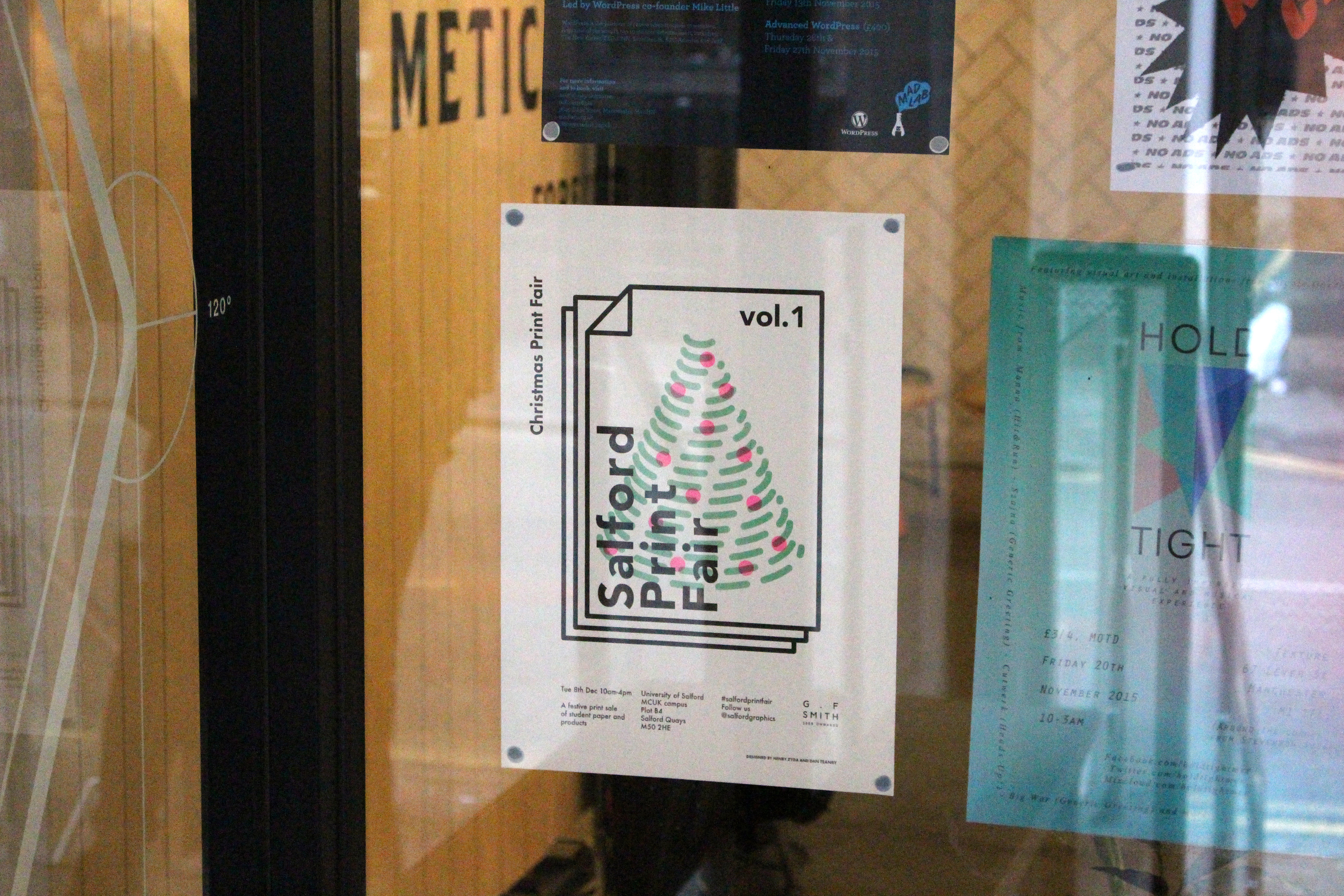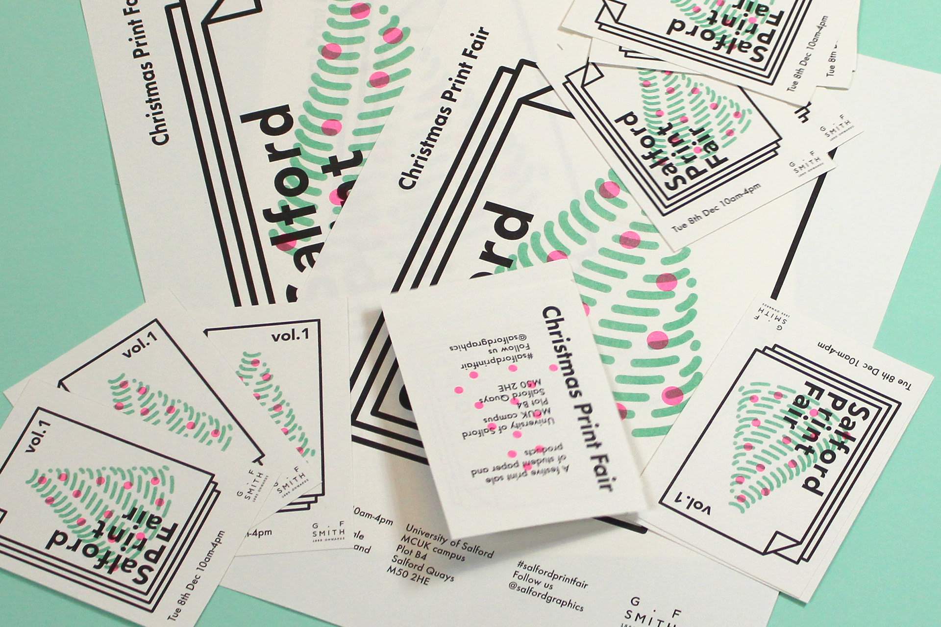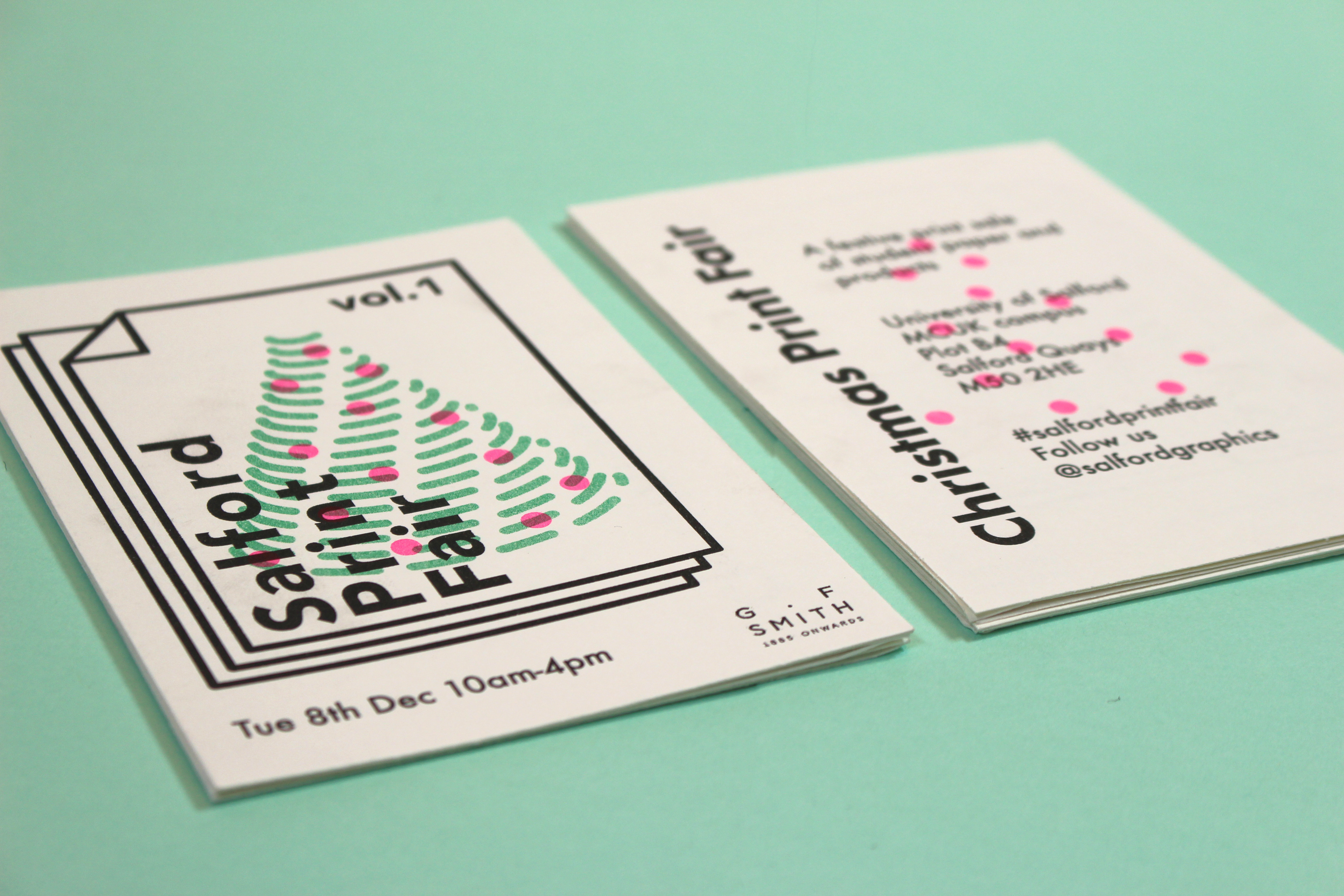 The University of Salford held its first print fair during the festive season of 2015. We were approached and asked to brand the event, creating promotional material such as posters and leaflets.