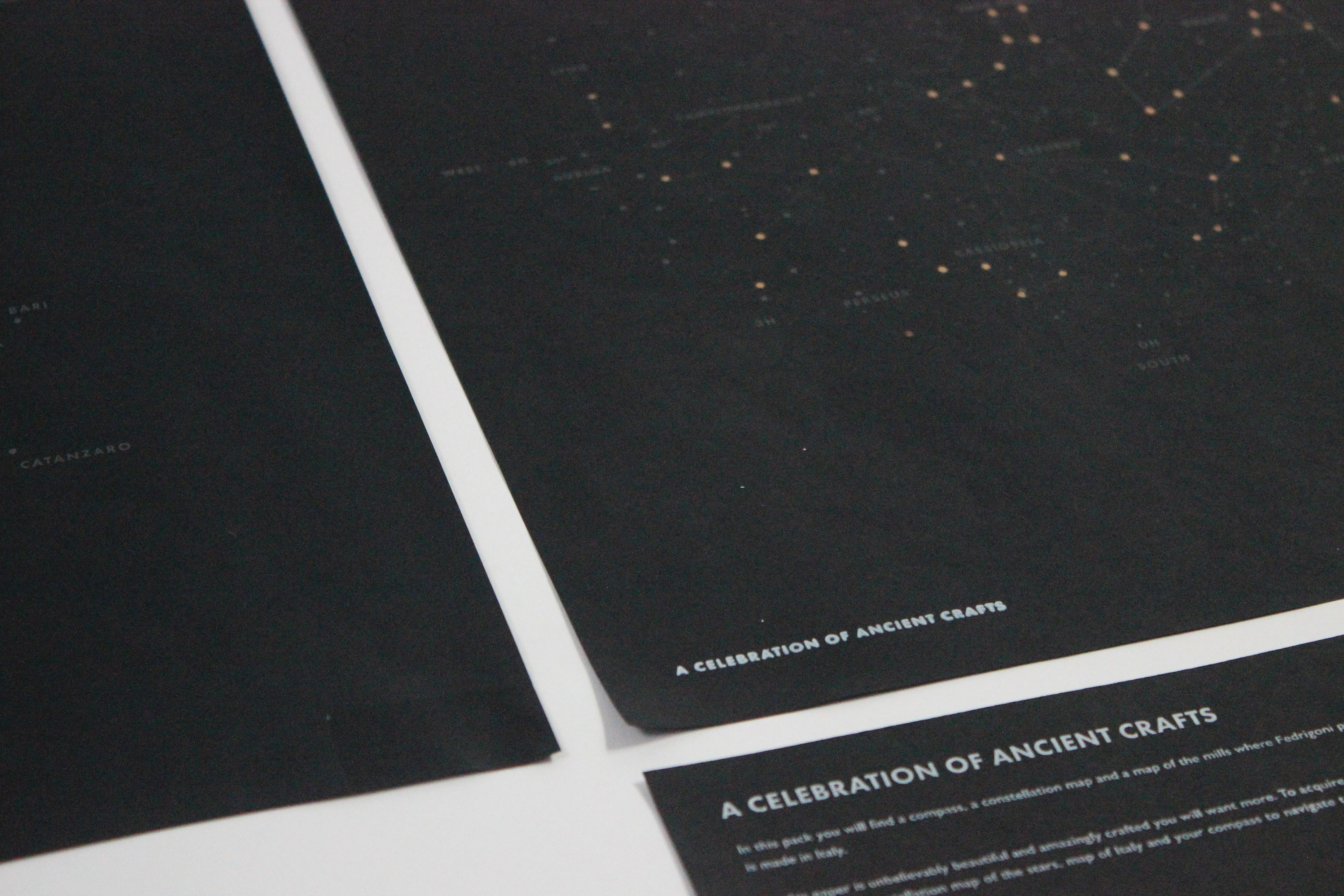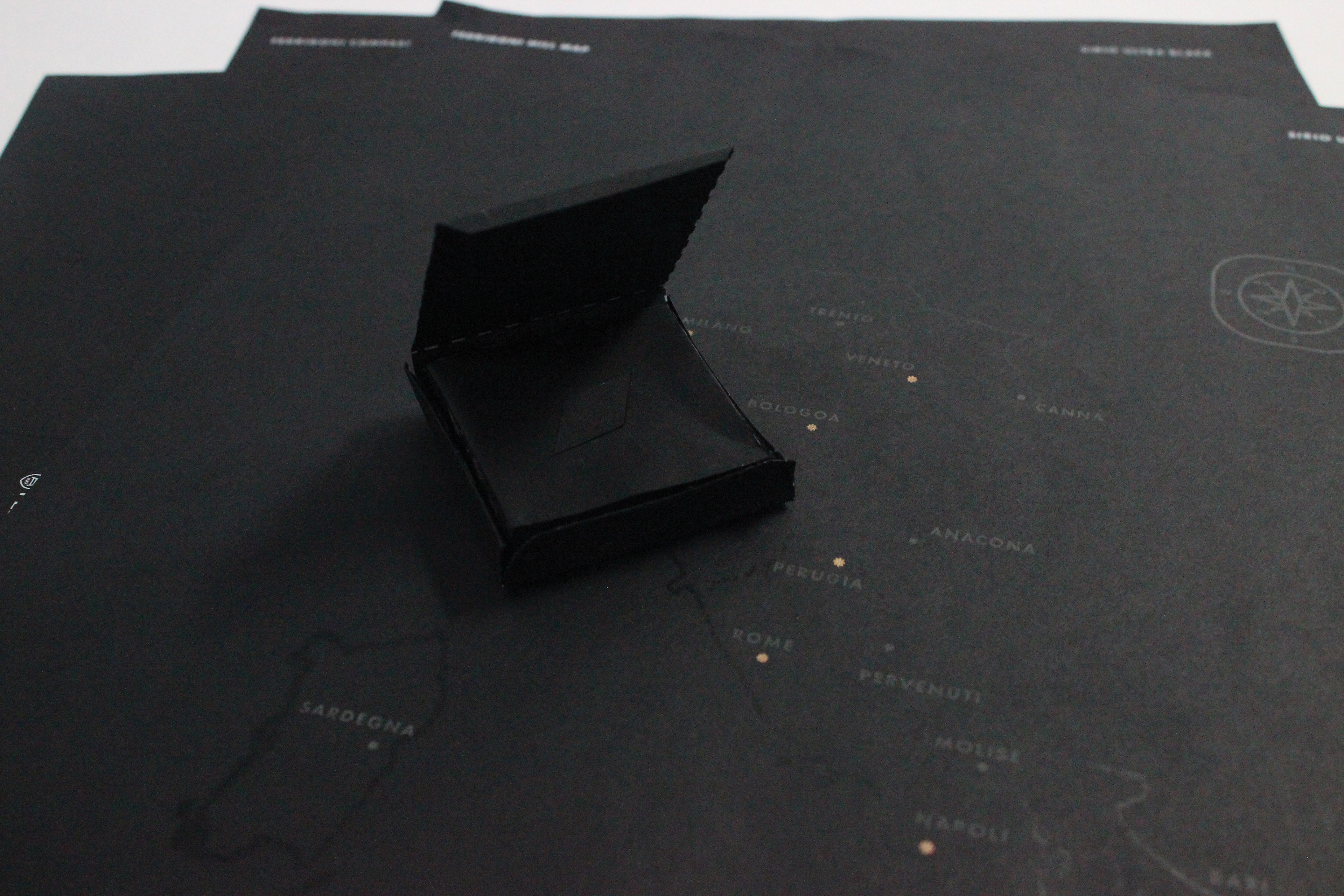 YCN - Fedrigoni Brief to create a marketing tool for The new ultra black paper Sirio Ultra Black. Concept to celebrate the craft of paper making and navigation.